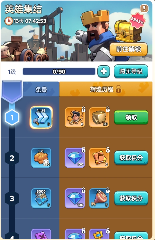 3.提升历程等级后,您可获得更丰厚的奖励;