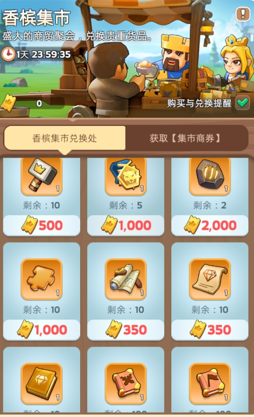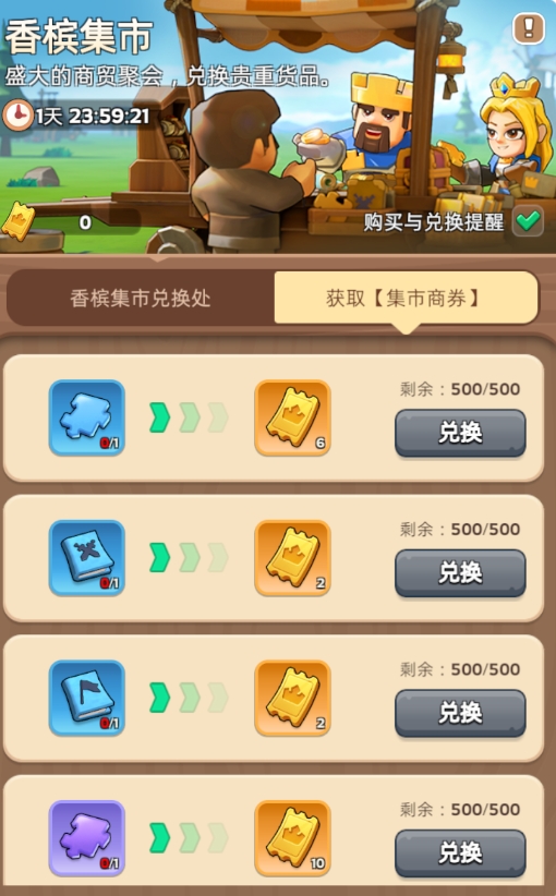 • 在集市里,可将多余物品换成【集市商券】或用【集市商券】购买其他重要道具。