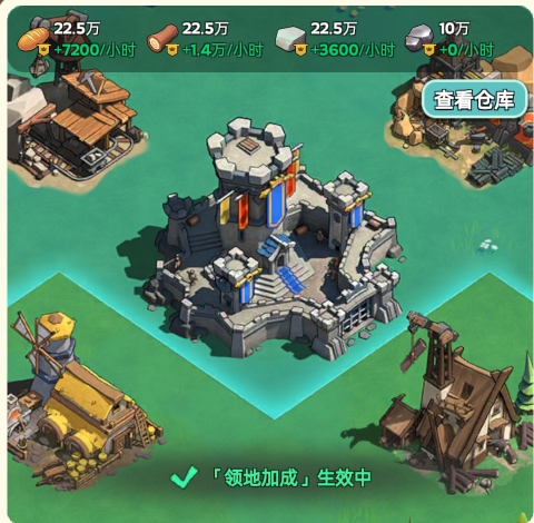 如大屏幕中间所示,如果您的城镇位于您的领地内,那么点击底部“加成数值”按钮即可看到领地加成统计。
