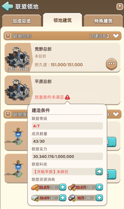 3.提升联盟等级和建造荣耀建筑,均可提升【领地加成】