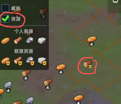 地图上有联盟资源位置,您可以看到勾选左上角的资源过滤器+足够缩小地图